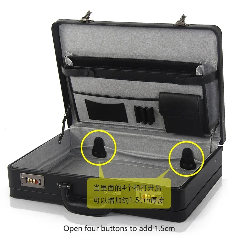 This executive leather laptop briefcase is designed for professionals who value both security and style. Featuring a built-in password lock, it keeps your belongings safe wherever you go. The large-capacity design fits laptops up to 19 inches and includes multiple compartments for organization. Perfect for business travel, office work, and daily commuting.