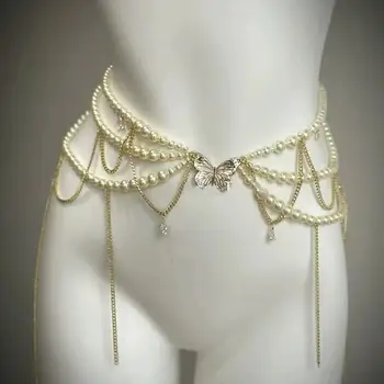 Stylish Pearl Waist Chain for Women Multilayer Retro Body Belt Jewelry